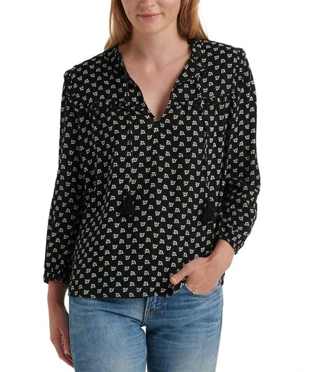 Bouncy tassels and a floral motif bring sweet feminine charm to this top.