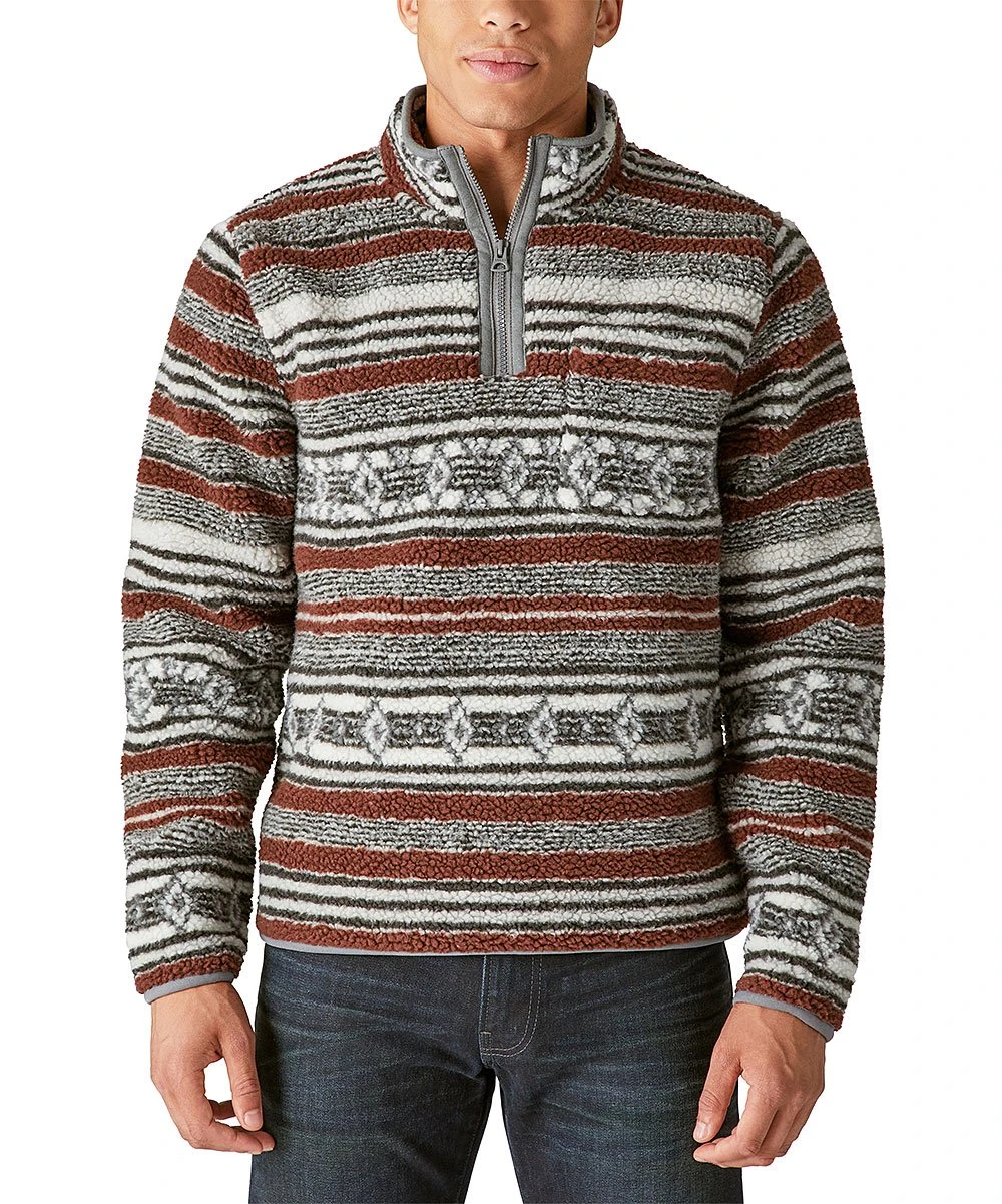 This sherpa pullover offers a pile with a southwestern design and a quarter-zip neck.