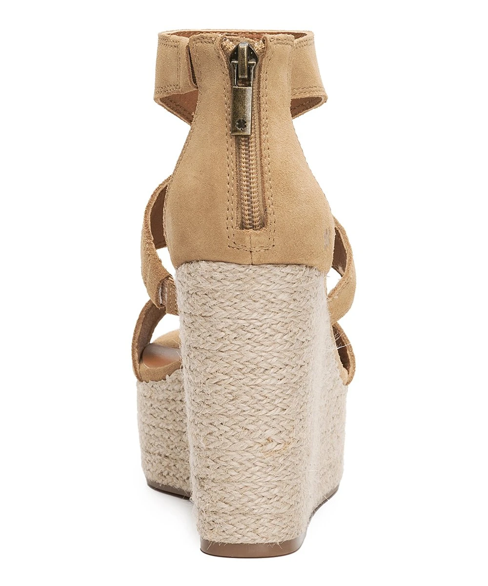 Elevate your warm-weather ensemble with this platform espadrille that features metal accents and a back zip closure.