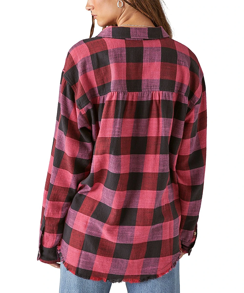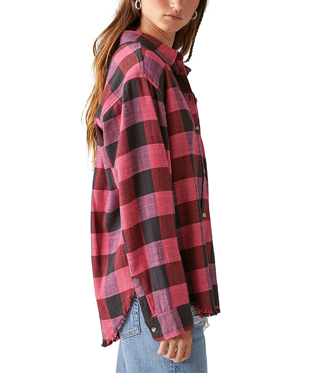 This cotton button-up features a plaid print and oversize fit.