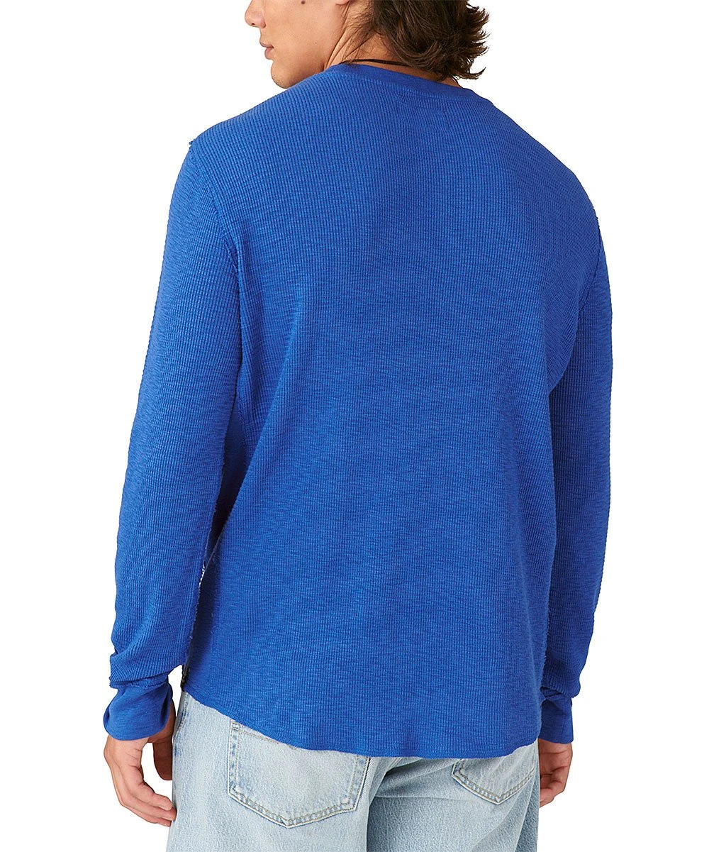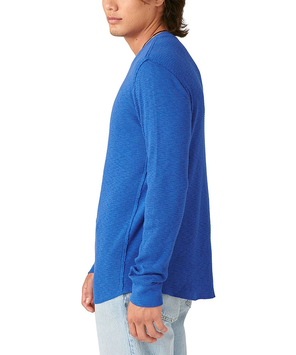 This tee offers long-sleeves and a crewneck in a thermal 100% cotton fabric.
