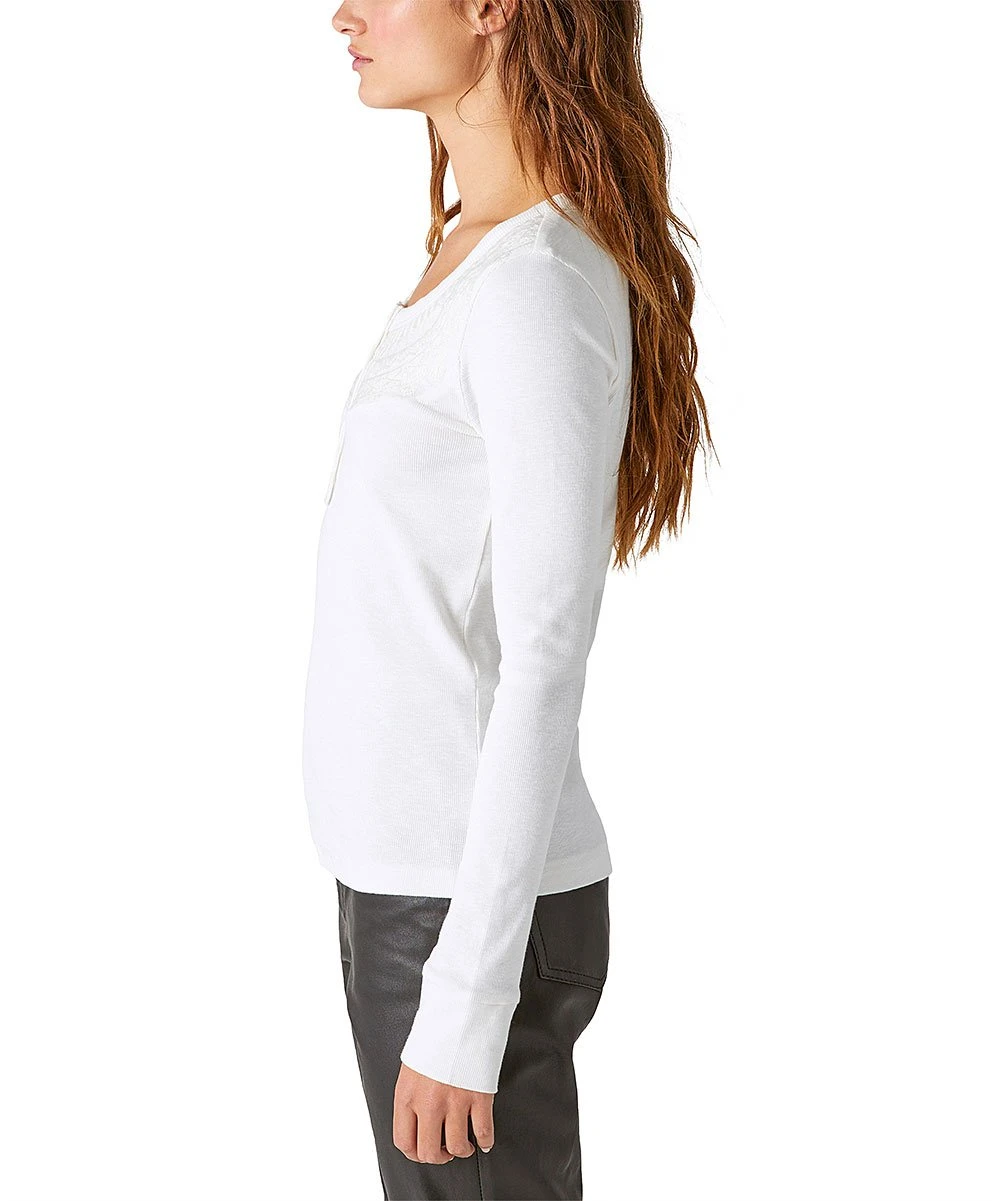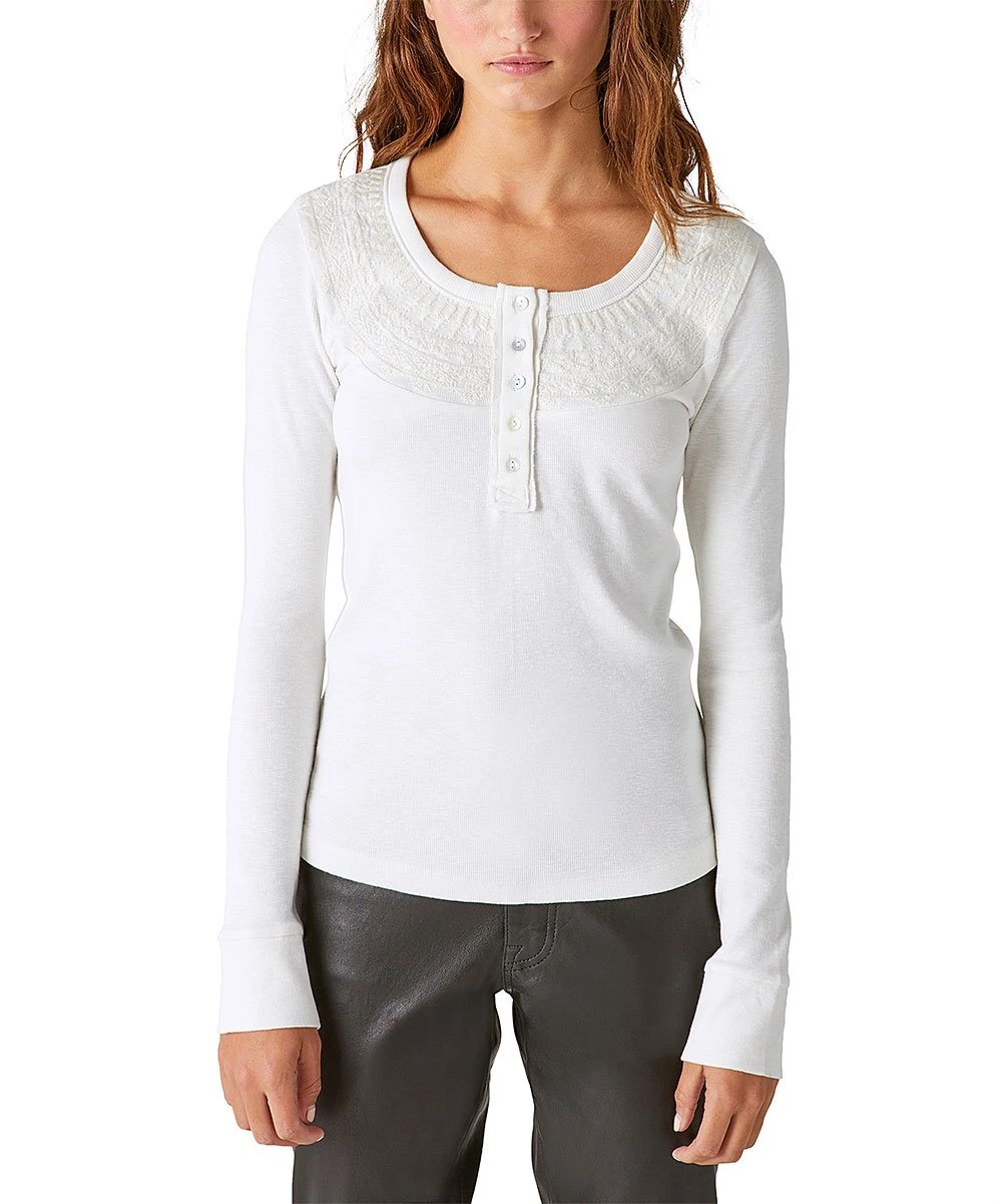 Slip into this long-sleeve henley that offers embroidered elements and a cotton material.